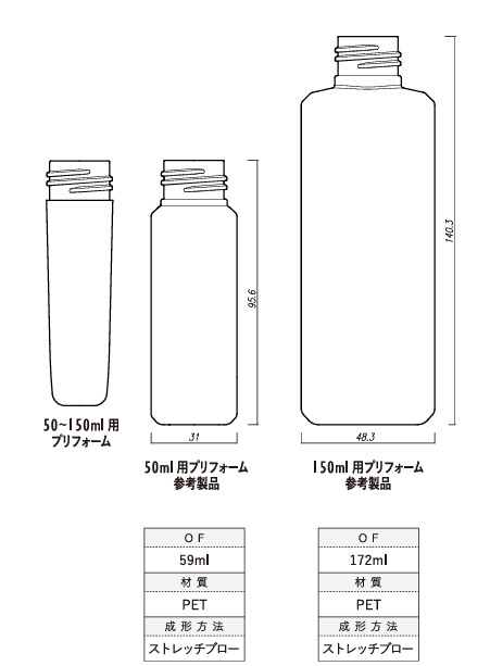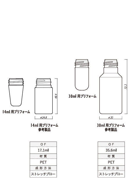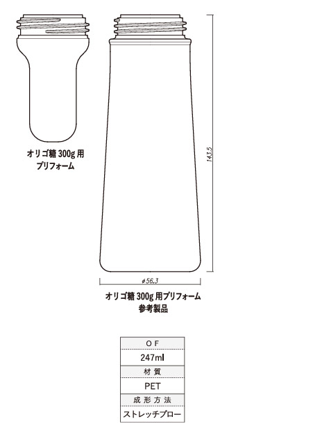 ※ 記載以外の内容量で当該プリフォムをご使用の際、要お問い合わせ願います。