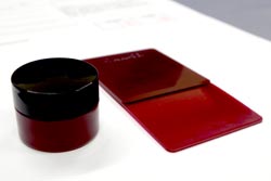 プラスチックの元見本を参考に、お客様の商品イメージと照らし合わせ、色の調整を行っていきます。